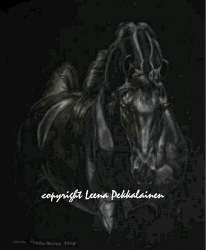 Halusin kokeilla, miltä näyttää kun tekee mustan hevosen mustalle taustalle. Omaksi iloksi harjoitustyönä maalattu pastellityö, joka roikkuu omalla seinälläni.(Käytetty referenssinä hevoslehden valokuvaa, jossa ei valitettavasti ollut kuvaajan nimeä, jotta voisin mainita sen tässä).